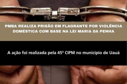 A Polícia Militar da Bahia (PMBA), por intermédio da 45ª Companhia Independente de Polícia Militar (CIPM), realizou, na noite de segunda-feira (18), a prisão em flagrante de um homem por violência doméstica, no município de Uauá.